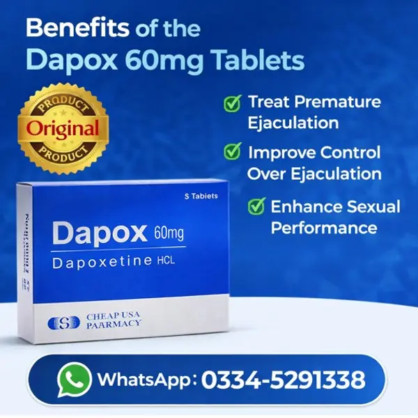 Dapox 60Mg Dapoxetine Tablets In Pakistan Is a Selective Serotonin Reuptake Inhibitor Medication This is Encouraged for Sufferers Experiencing Untimely Ejaculation, a Situation in Which Males Orgasm Greater Quick. Daraz Mart is the Pleasant Online Pharmacy In Pakistan to Efficaciously Treat Your Pe, as We've Got Delivered Dapoxetine in Pakistan for on Line Transport.